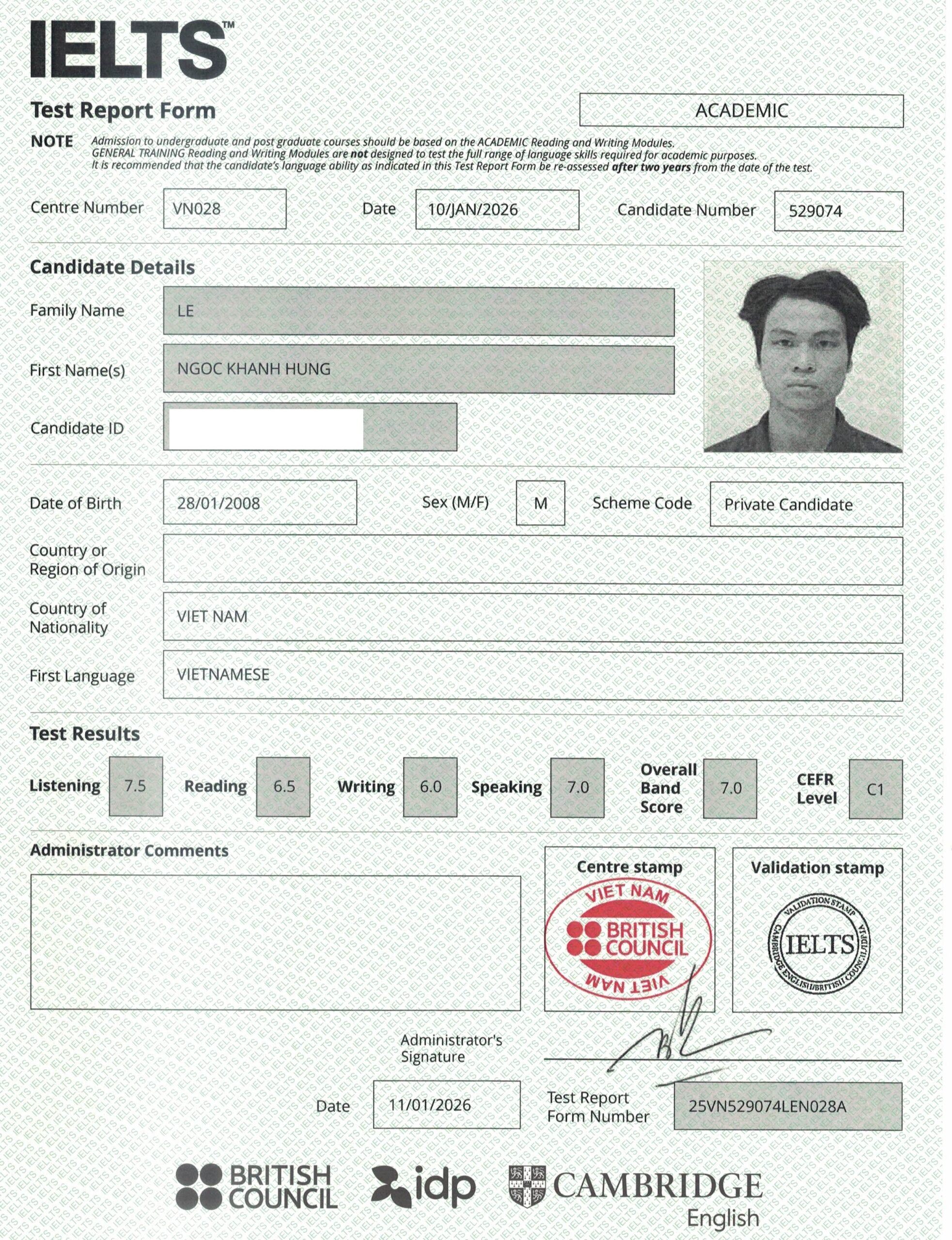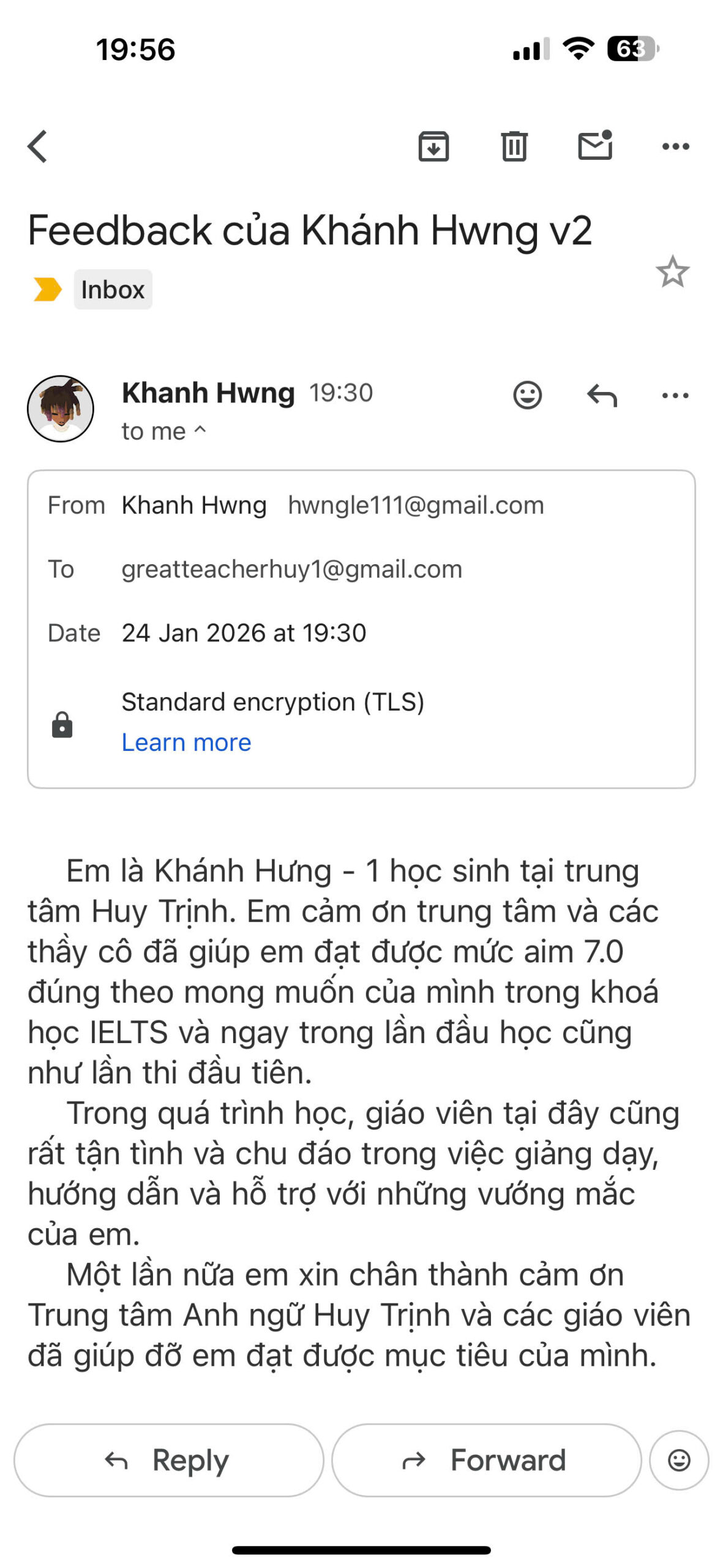 Kết quả, em xuất sắc đạt IELTS 7.0 ngay trong lần thi đầu tiên, đúng theo gói cam kết mà em đã đăng ký.