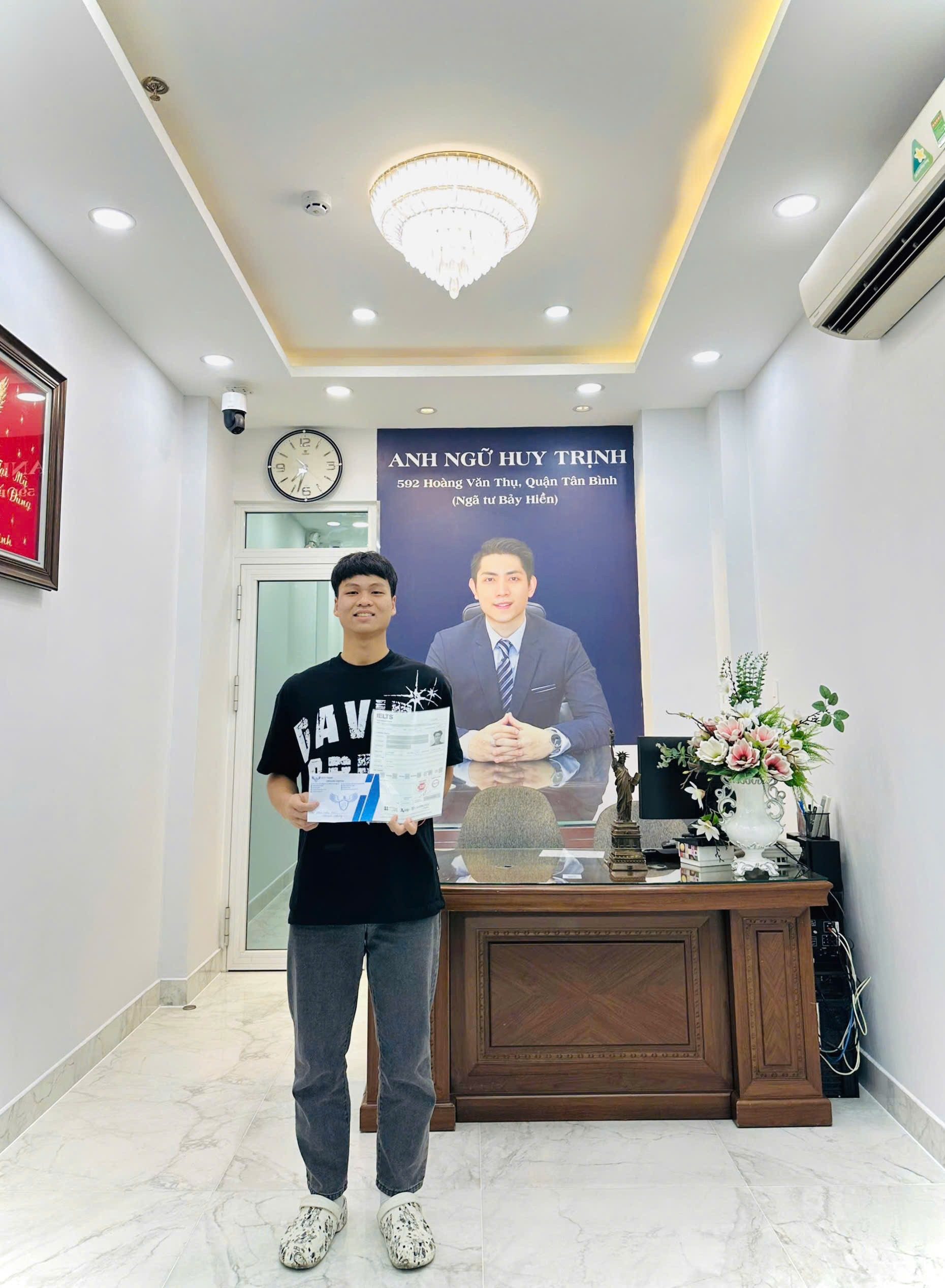 Giữa guồng quay của năm học lớp 12, áp lực bài vở, kiểm tra và ôn thi tốt nghiệp, nhiều bạn chọn tạm gác IELTS lại. Nhưng Khánh Hưng chọn đi sớm hơn một bước, xem IELTS là bước đệm quan trọng cho hành trình vào Đại học. Lần đầu tiên học IELTS và cũng là lần đầu theo học tại một trung tâm, Hưng vẫn nghiêm túc sắp xếp thời gian ôn luyện đều đặn song song với chương trình phổ thông.